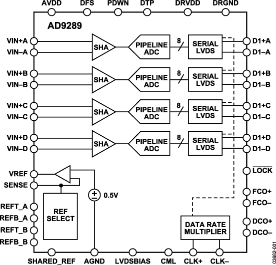 The AD9289 is a quad 8-bit, 65 MSPS analog–to– ...