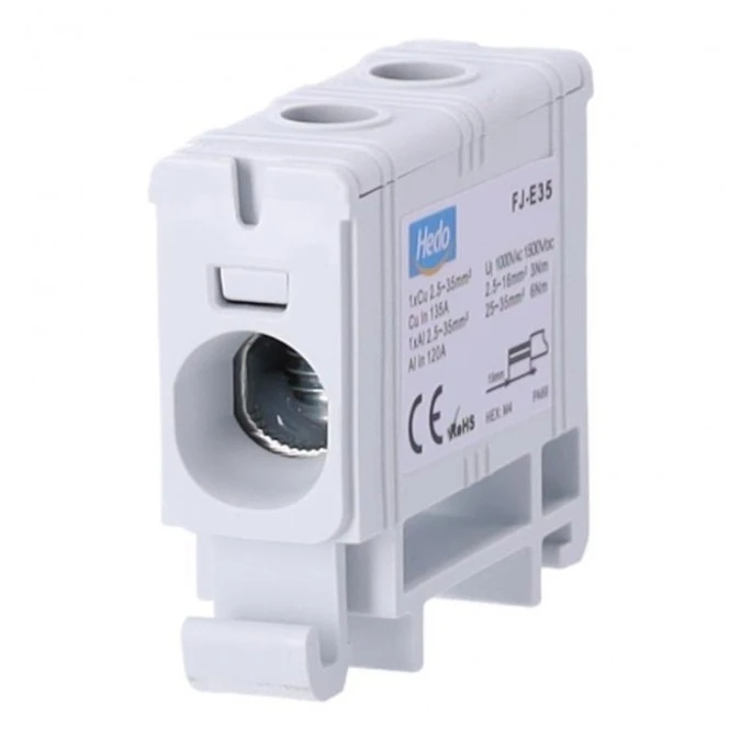 Blok rozdzielczy ‑ odgałęźny 1 ‑ polowy 2,5-35mm2 szary montaż płaski FJ-E35 85816