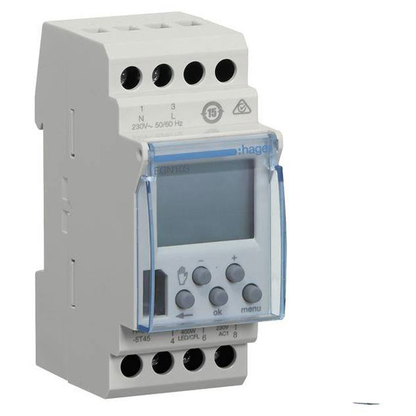 4. Hager EGN103 DIN rail mount timer digital white plastic 555.16