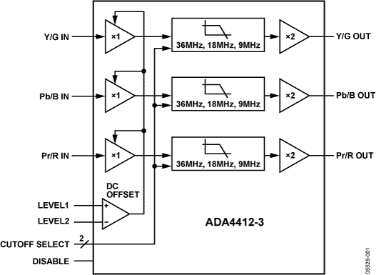2. Integrated Video Filter with Selectable Cutoff Frequencies for RGB, HD/SD, Y, C, and CV Sample