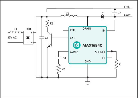 12. LED Driver with Integrated MOSFET for MR16 and Other 12V AC Input Lamps Sample
